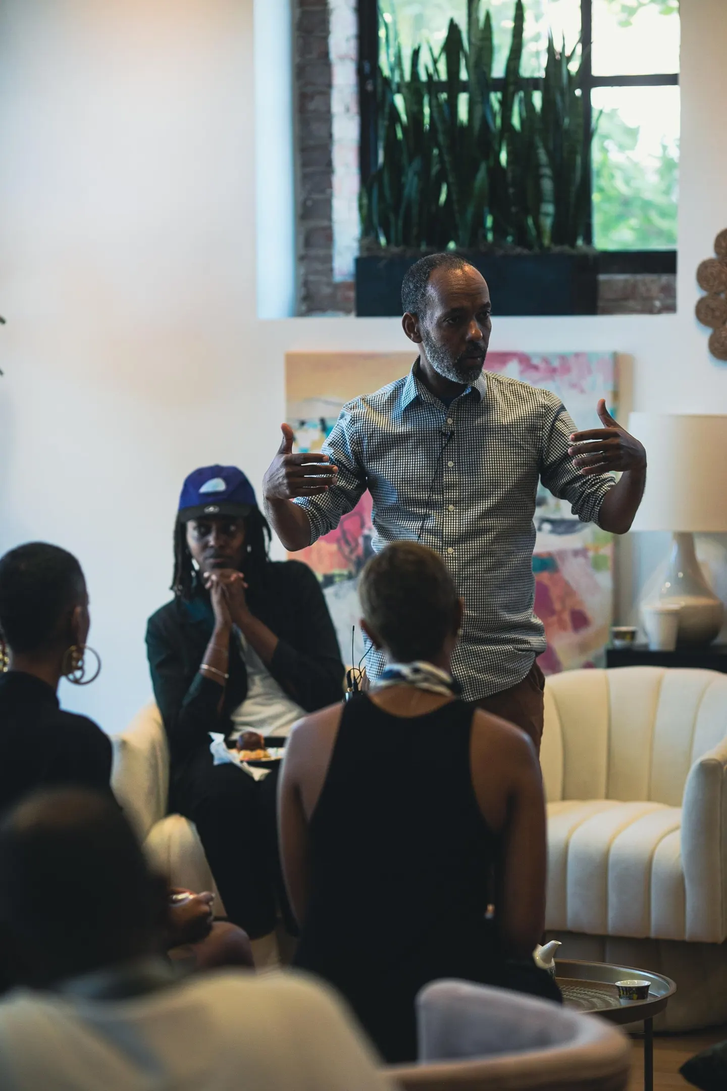 In Ethiopia, the birthplace of coffee, there’s a saying: “Buna dabo naw” (Coffee is our bread). According to legend, a 9th-century goatherd discovered coffee when he noticed the lively energy of his herd after they ate red berries. Coffee has since become a powerful connector of people. Eyakem began incorporating the Ethiopian coffee ceremony into his practice during his Tulsa Artist Fellowship to engage with the Tulsa community. Traditionally, the coffee ceremony in Ethiopia has been a time to exchange news, discuss local events, and share wisdom passed down through generations.